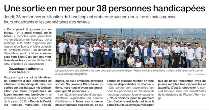 Créée sur le modèle de l’ASLAM (Association Sports et Loisirs Adaptés de la Manche), l’Association Sports et Loisirs Adaptés de Bretagne (ASLAB) peut gérer les contacts nécessaires en Bretagne chaque fois que l’ASLAM organise une manifestation. L’ASLAB sourient l’action de l’ASLAM en Bretagne. Elle est membre de la Fédération Nationale du Sport Adapté.
